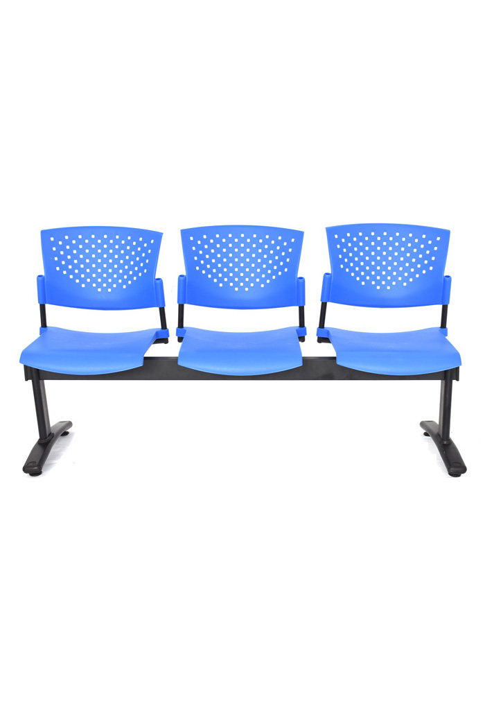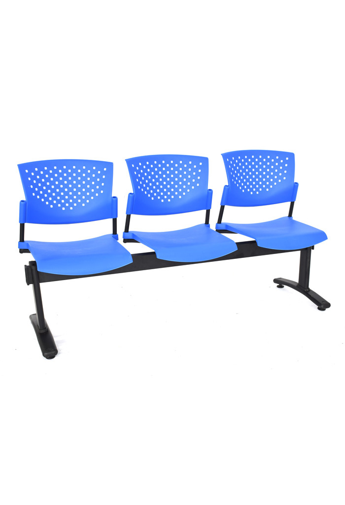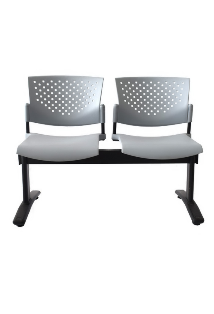 - Estructura de asientos en tubo redondo de 3/4” sobre un riel en tubo rectangular 3" x 1 1/2" con patas en tubo ovoide de 850mm x 300mm.