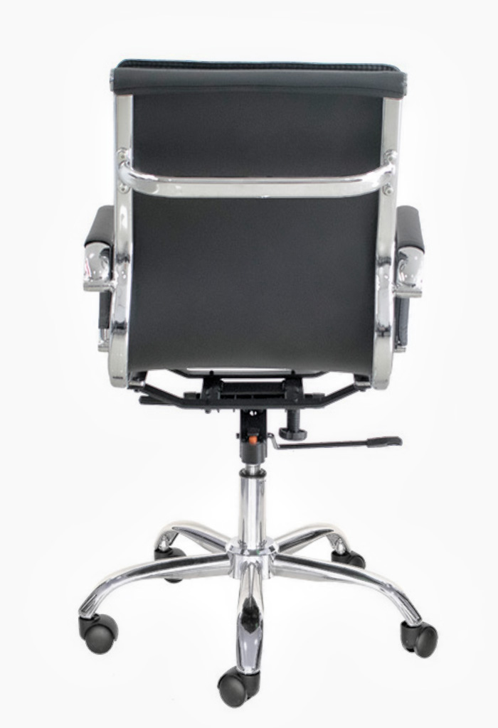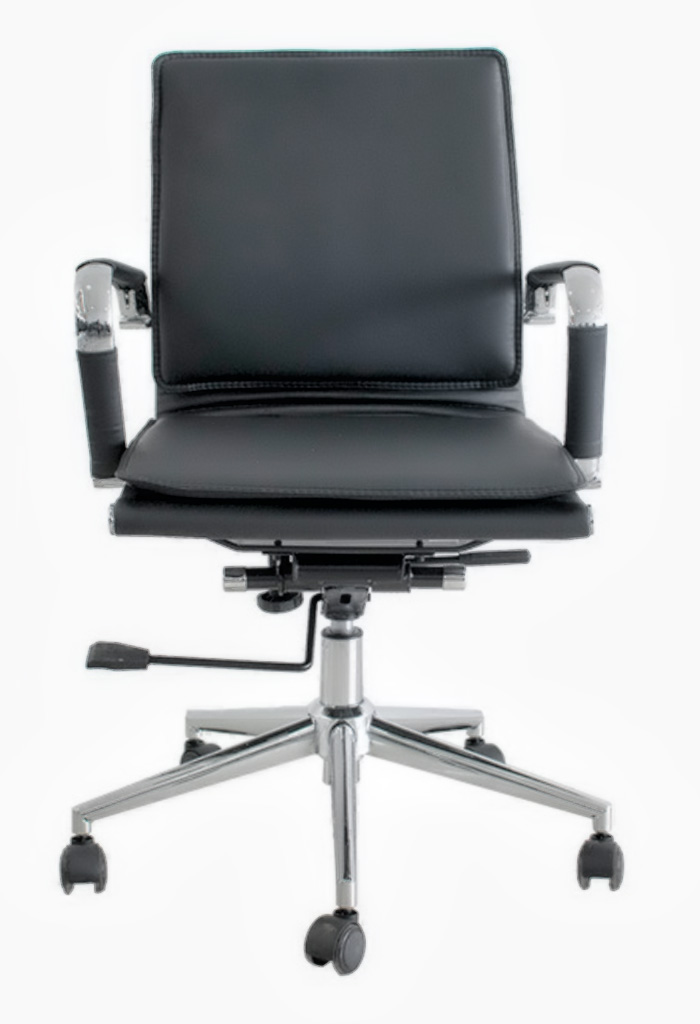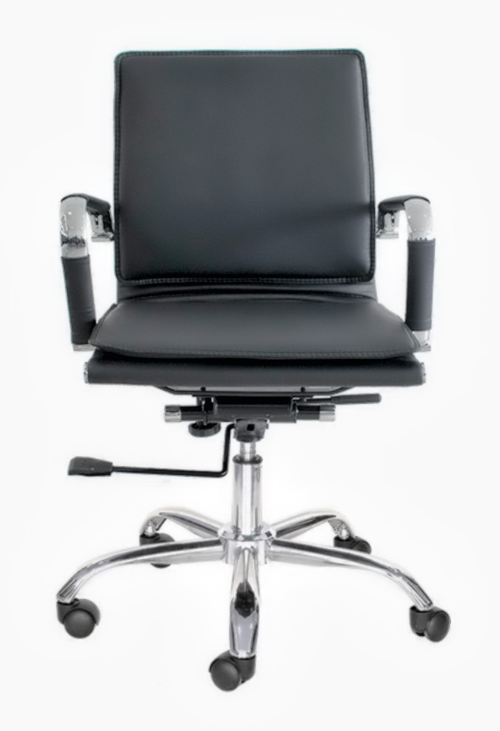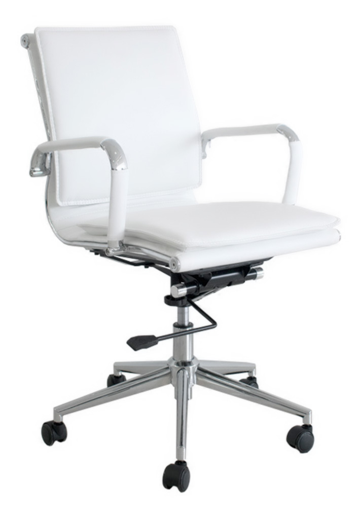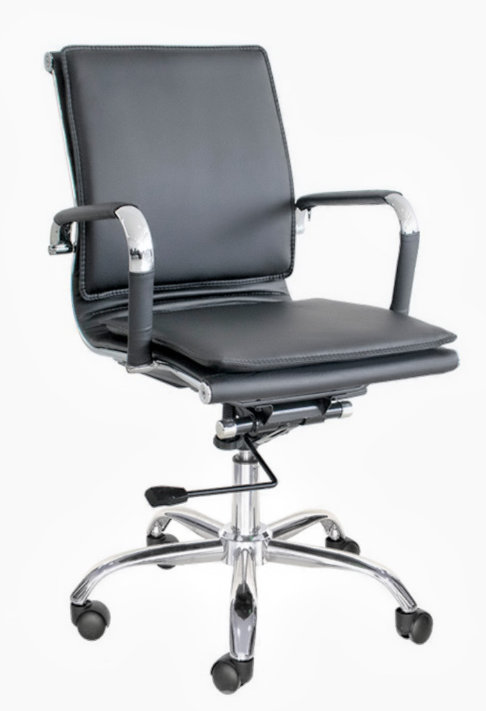 Asiento y espaldar tapizado en cuerina negra o blanca.
