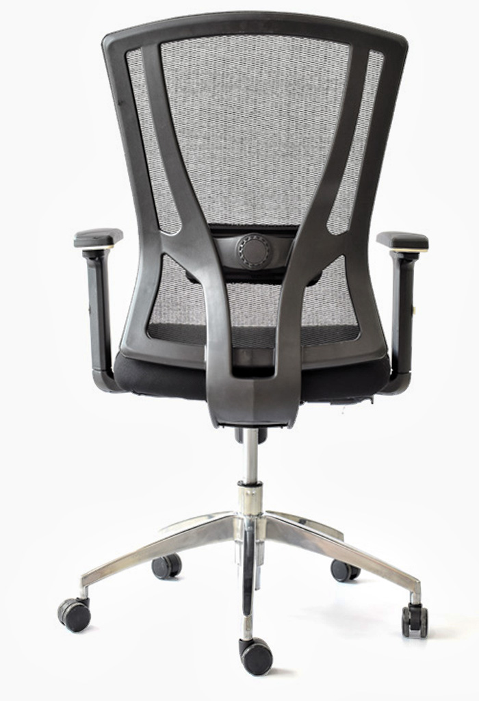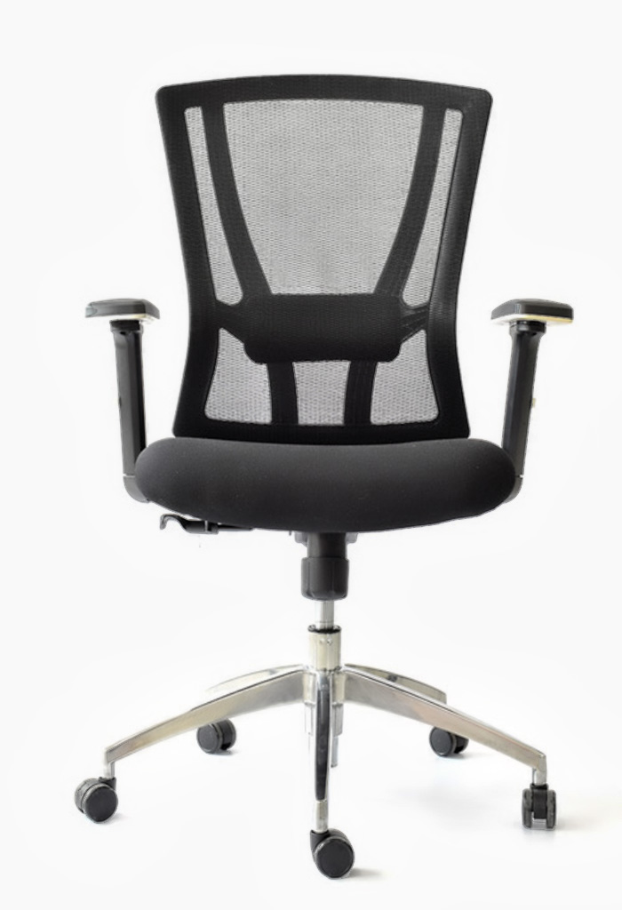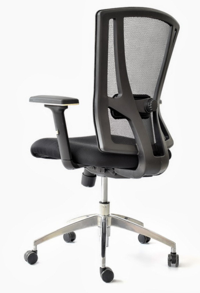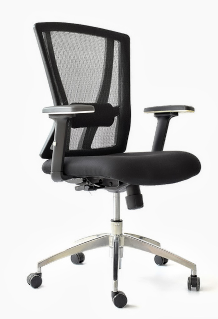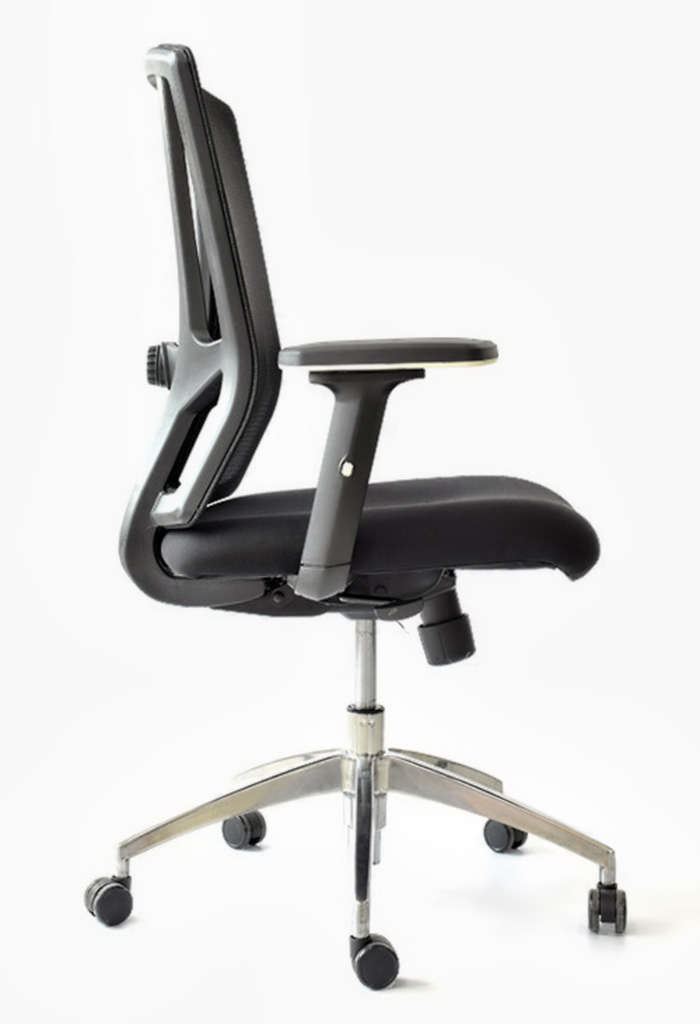 - Brazos de PVC regulable (altura, ángulo y profundidad) con apoyabrazos de PU.
