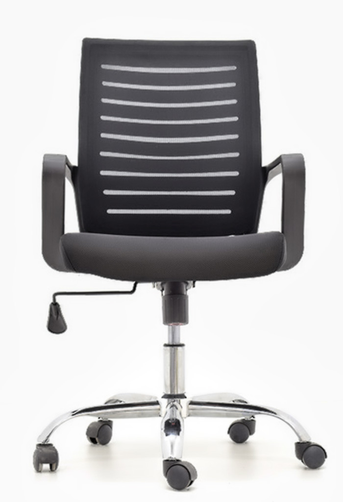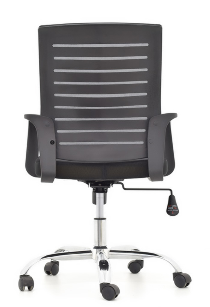 - Asiento Tapizado en tela de malla gris.