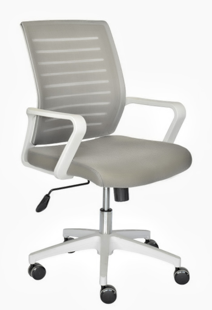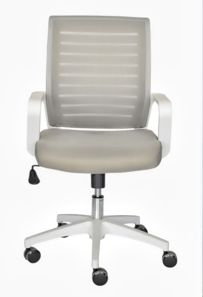 - Espaldar Tapizado en malla de nylon gris con estrucuta blanca de polipropileno.