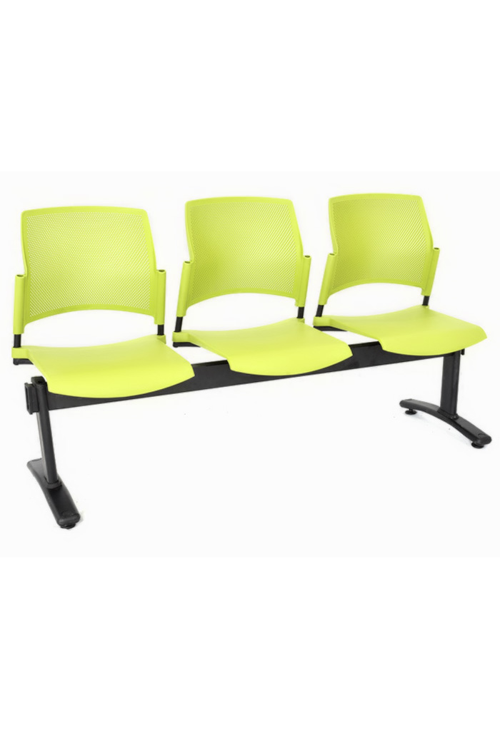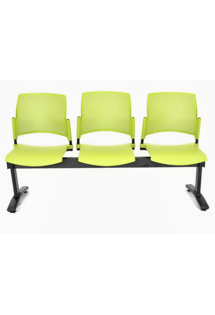 - Estructura de asientos en tubo redondo de 3/4” sobre un riel en tubo rectangular 3" x 1 1/2" con patas en tubo ovoide de 850mm x 300mm.