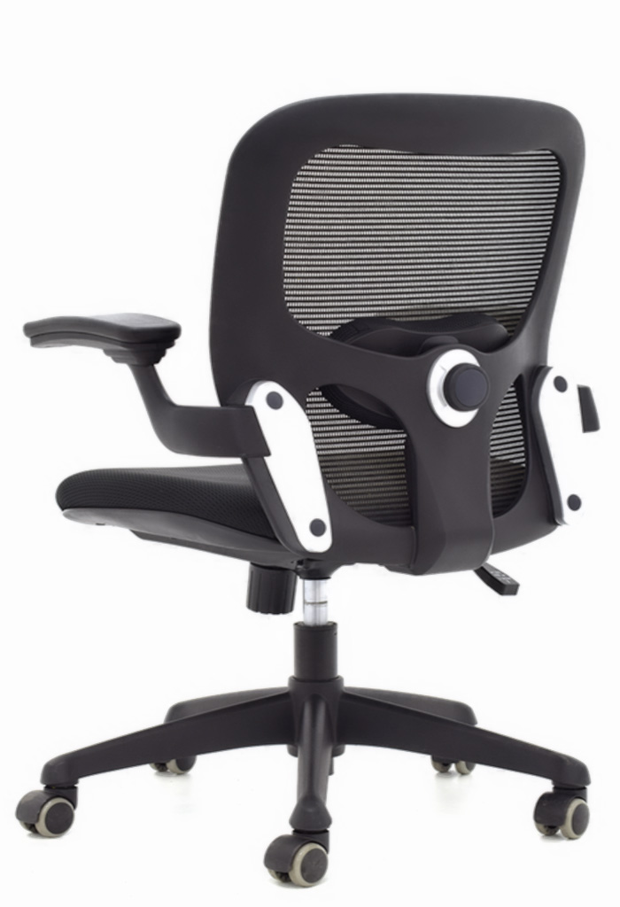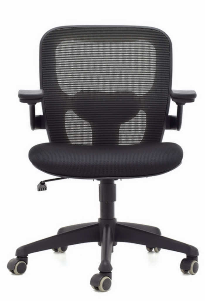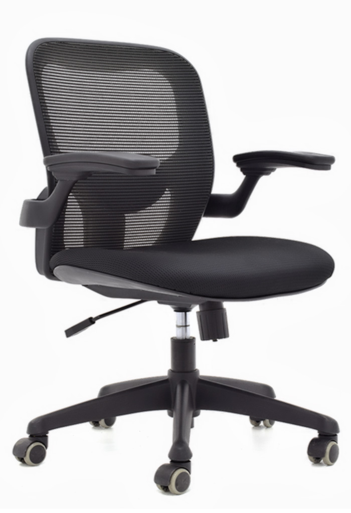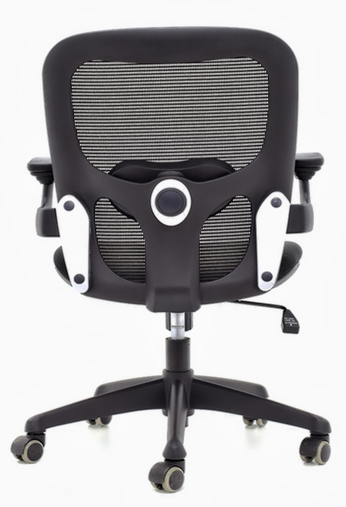 - Asiento tapizado en tela de malla con espuma inyectada de PU.